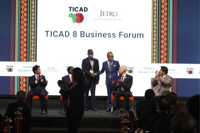 The signing of the MOU (photo provided by JETRO, at TICAD8 27th August 2022)