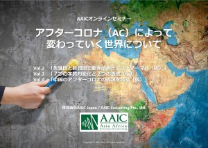 「アフターコロナ(AC)によって変わっていく世界について」のオンラインセミナーを開催します。 今回はACで世界はどう変わるか?というテーマで、表層的な現象だけではなく、その本質的な変化について、具体的な事例を紹介しながらオンライン形式でお伝えしたいと思います。 セミナー詳細については、下記よりご確認・お申し込みください。 (社内ネットワークからアクセスできない方は、ホームページのお問い合わせからご連絡ください) === ・AAICオンラインセミナーVol2  「先進国と新興国で動き始めたニューノーマル(仮)」5月29日(金)15時~16時30分(スピーカー:難波 昇平、山中 真次) ACでは、「本質的な変化への対応」と「従来の延長線上にある変化の加速・前倒し」が求められています。 株価が伸びている、売り上げが伸びている、トラフィックが増えている・・・など、既に株式市場、企業、消費者/ユーザーが反応して、成長の兆しのある事業/サービスについて、世界を横断してみていくことで(アメリカ、中国、アジア、アフリカ)、その裏にある本質的なトレンドと新たなチャンスを考えたいと思います。 お申込み:http://y.bmd.jp/bm/p/aa/fw.php?d=70&i=aaicjapan2019&c=28&n=7756   ・AAICオンラインセミナーVol3  「アフターコロナ(AC)で世界はどう変わるか? ~7つの本質的変化と2つの蓋然~」 ‐ 6月4日(木) 16時~17時(スピーカー:椿 進) 今回のコロナは、リモートワークやオンラインサービスが伸びるという、表層的な現象だけではなく、我々の価値観/社会構造/地政学/生き方まで大きな変革を生み出すと思っております。 その7つの本質的変化と2つの蓋然事象についてお話ししたいと思っております。そこから今後の我々の指針およびチャンスを探りたいと思います。 お申込み:http://y.bmd.jp/bm/p/aa/fw.php?d=70&i=aaicjapan2019&c=29&n=7756   ・AAICオンラインセミナーVol4  「中国のアフターコロナの仮説を語る(仮)」 ‐ 6月29日(月)15時~16時(スピーカー:田中 秀哉) いち早くコロナの終息を迎え、経済活動が再開された中国。ビフォーコロナ(BC)からデジタル化が急速に進んでいた中国ですが、ACはどのような世界になるのでしょうか? BCで成長したサービスから最新事例までを踏まえて、中国のACの仮説を一緒に考えていきたいと思います。 お申込み:http://y.bmd.jp/bm/p/aa/fw.php?d=70&i=aaicjapan2019&c=30&n=7756 ===