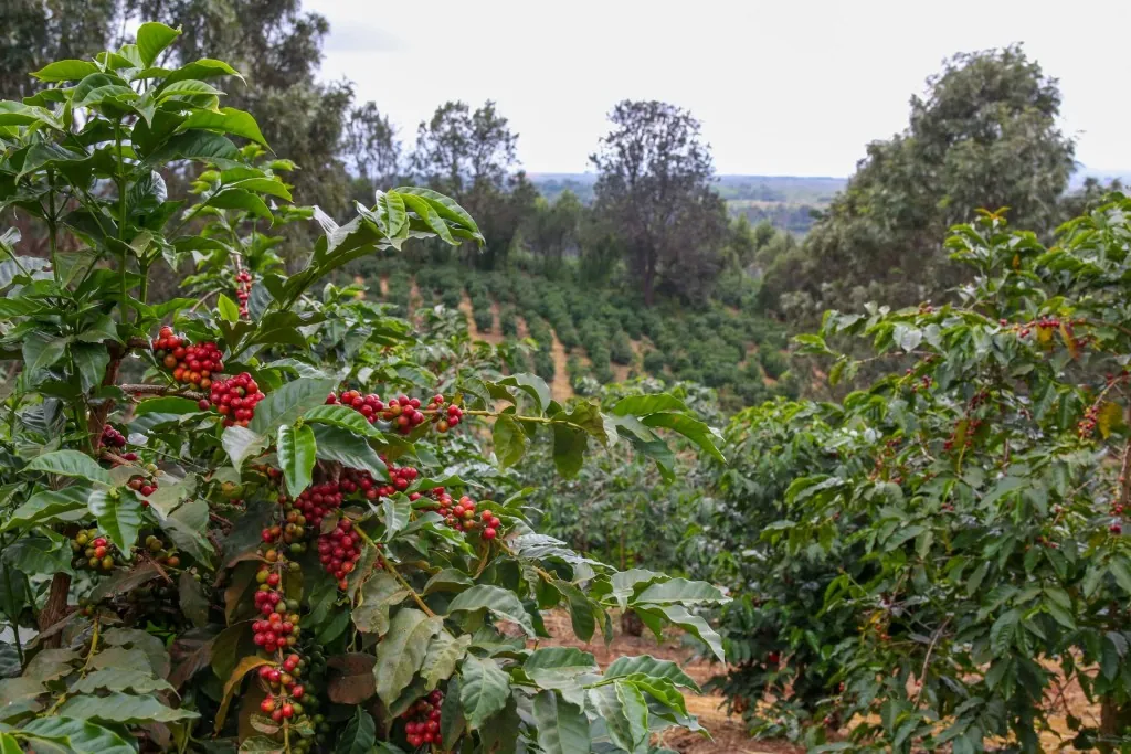 【写真:農園の様子(斜面いっぱいに広がる雄大なコーヒー農園)】