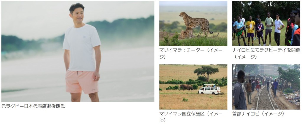 『皆様、元ラグビー日本代表の廣瀬俊朗です。この度、旅行会社HISと共同で企画した「ケニア体験ツアー」へのご参加を心よりお待ちしております。