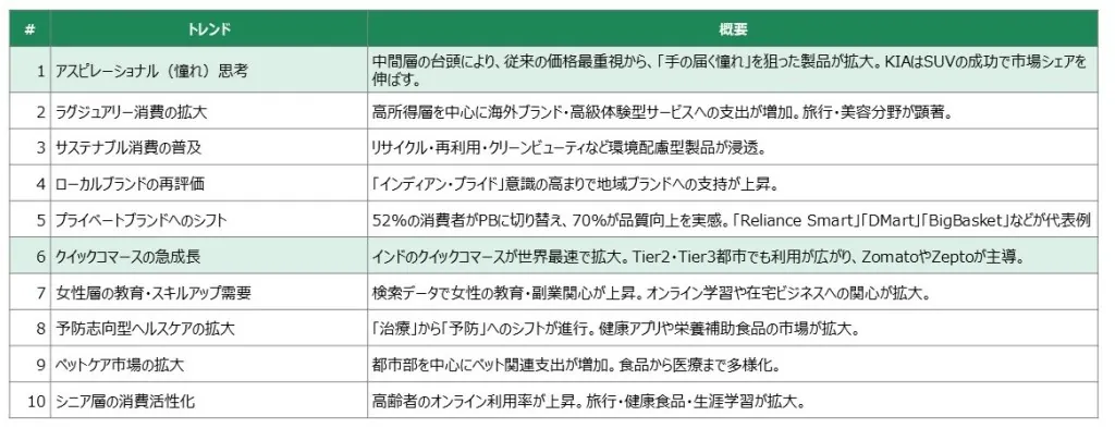 インドの近年のトレンド
