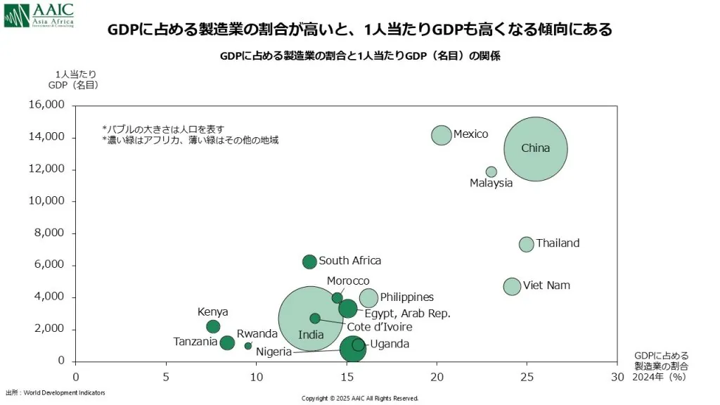 - アフリカや中南米は“製造業が育つ前に縮小する premature deindustrialization”に直面している