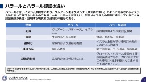 ハラールは宗教的信仰に基づく概念であり、ハラール認証はそれを第三者機関が証明する制度で、信頼性や国際流通における重要性が増しています。 1970年代以降、加工食品やグローバル流通の拡大を背景に、輸出入において信頼性のある証明が求められるようになり、多くの国で制度化されました。