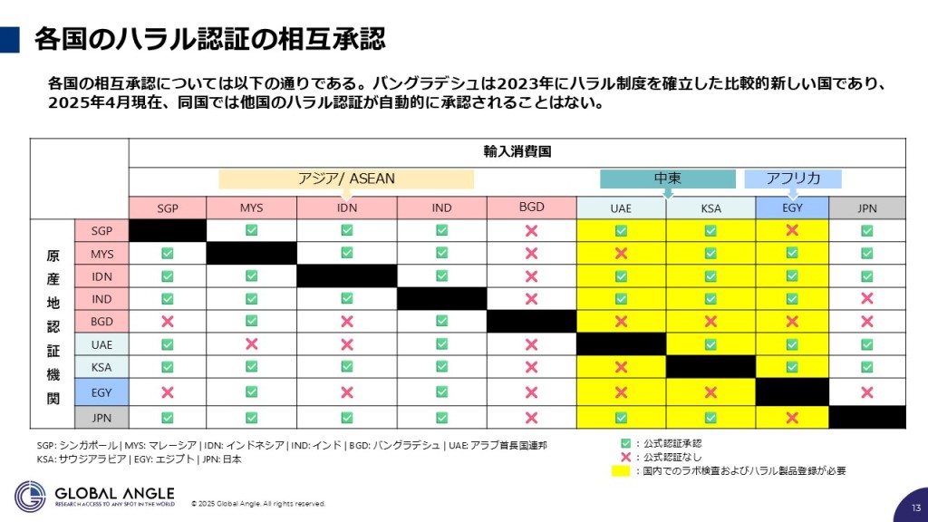 ●カテゴリーC: ハラール基準の強化 (インドネシア、バングラデシュ): ハラール市場を積極的に強化しており、すべての国産品に対してハラール認証を義務付けていく方向に進んでいます。