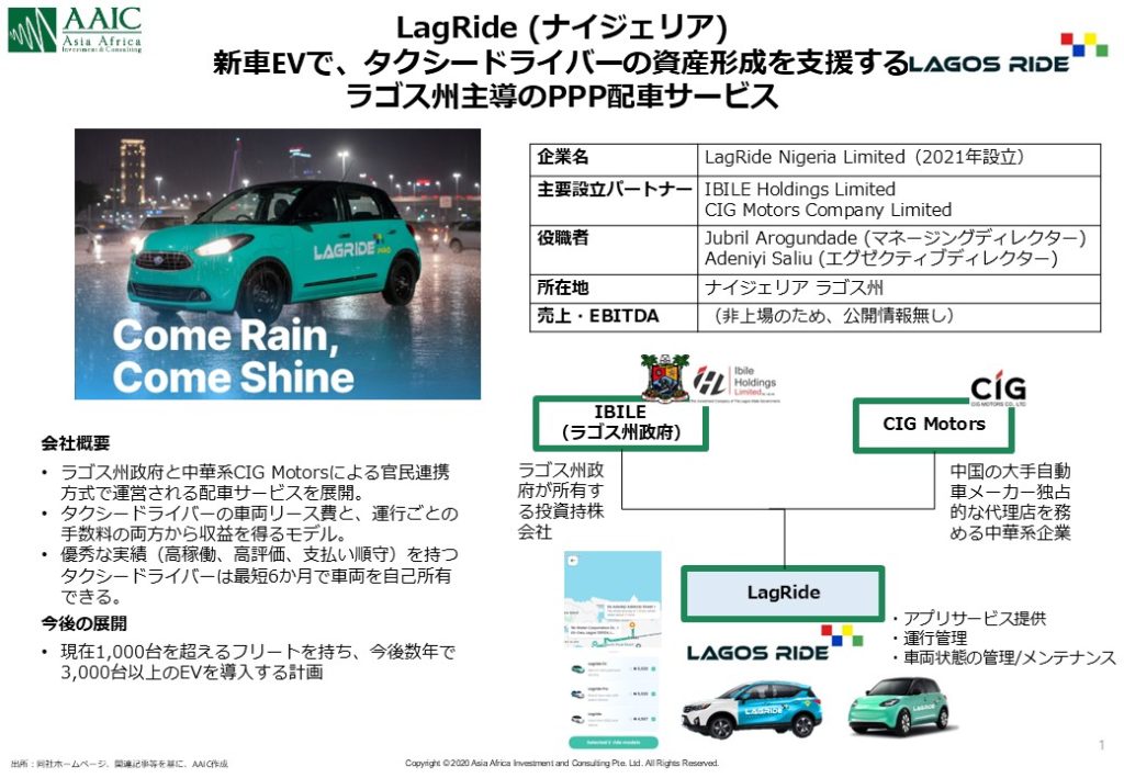 それが、中国系自動車メーカーの車両を扱う中華系現地代理店が、ラゴス州政府と組んで「Lagride」というライドシェア事業に参入したという、大胆な試みです。UberやBoltといった先行プレーヤーが存在する中で、なぜ今Lagrideなのか。今回はその背景とインパクトについて整理してみたいと思います。