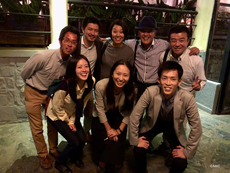左下 飯田さんの奥様、CEO 原田さん、原田さんの旦那様(写真はAAICに帰属)3家族とも、夫婦・子供連れでルワンダのキガリで生活し、現地スタッフ300名と共に200haのマカダミアナッツ農園と加工工場を運営している。