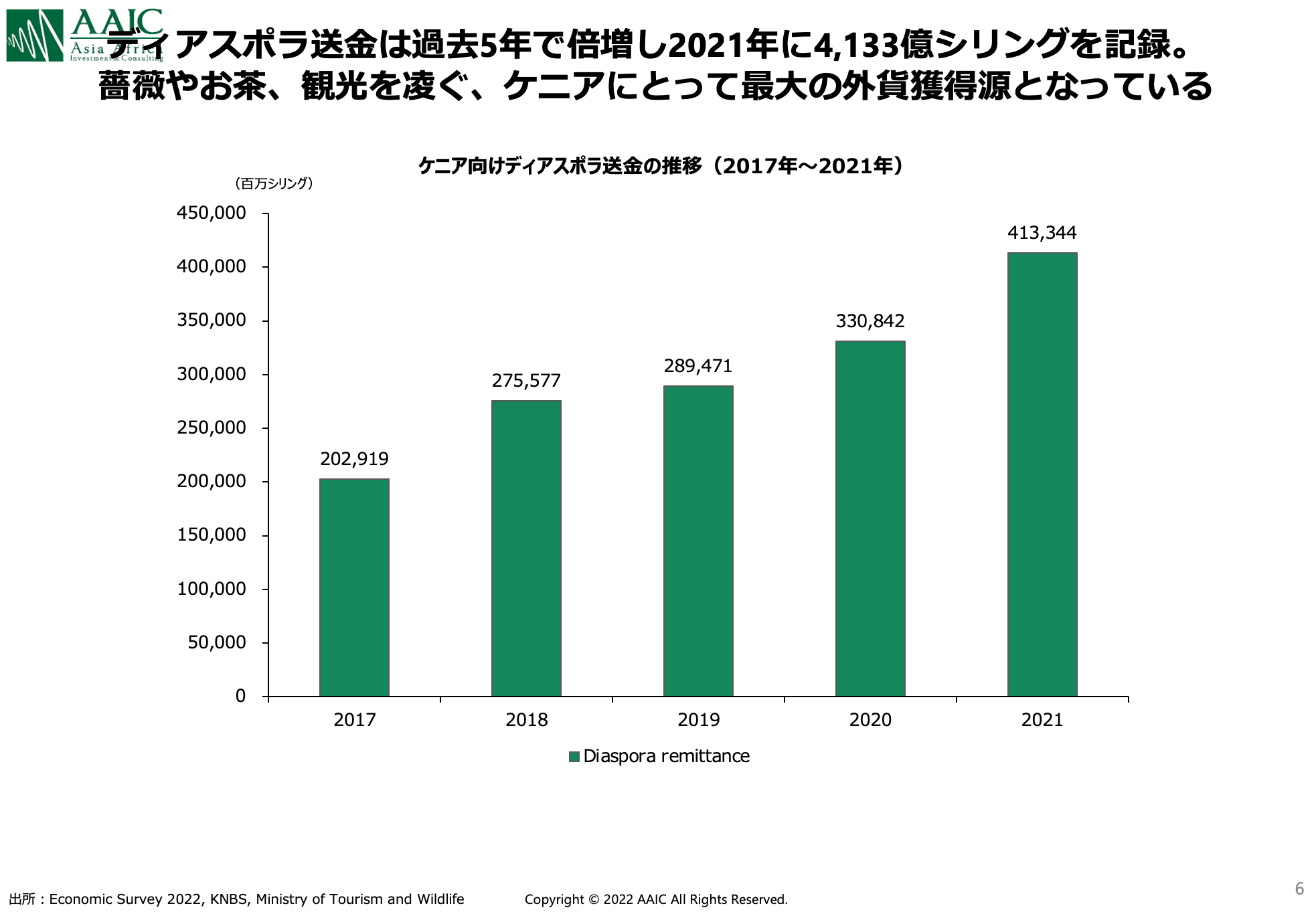 図表7:ケニア向けディスボラ送金の推移(2017年〜2021年)