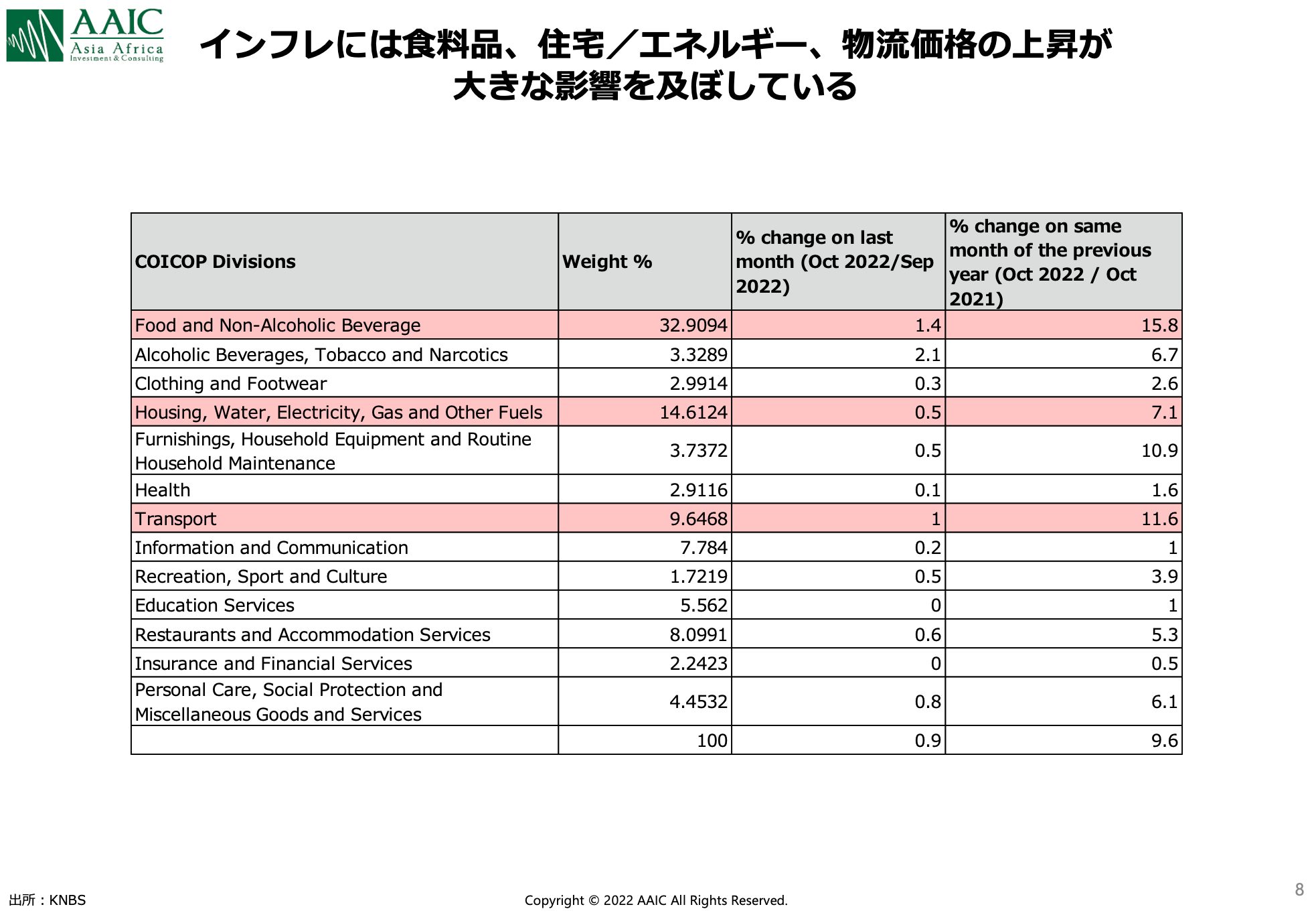 CPIは従来5~6%で推移していましたが、22年5月以降は7%を超える高水準に。10月は9.6%まで上がってきました。特に食料品、物流コスト、エネルギー価格が大きく影響を与えています。