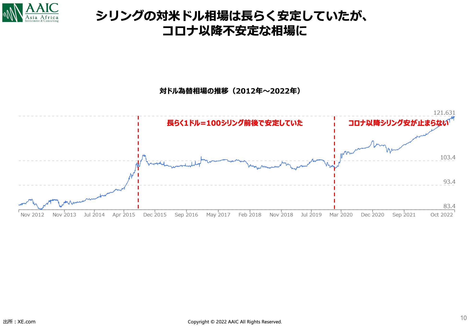 また、為替は22年に入り、対ドルで約20%のシリング安。まさにフリーフォール状態です。