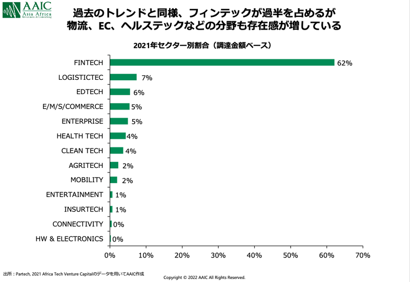 *図表はAAICに帰属図表2:アフリカスタートアップ セクター別資金調達割合(2021年)