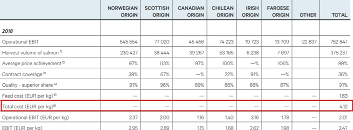 図4 Mowi社のサーモン養殖コスト