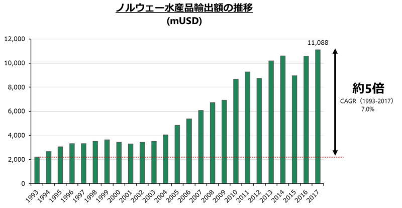 図2 ノルウェー水産品輸出額推移(Mn USD)