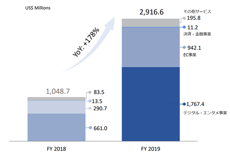 図3 Sea Ltd.の売上とEBITDA(FY2019)