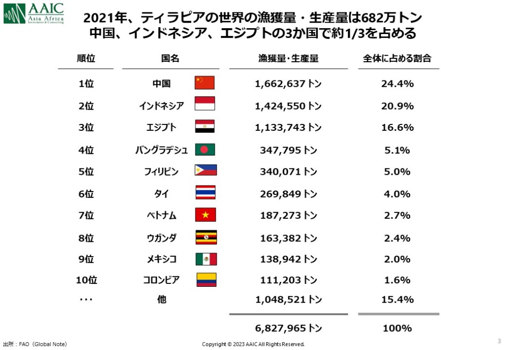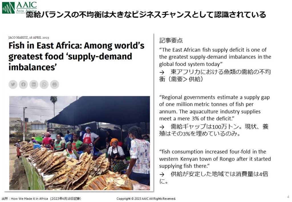 今回はアフリカにおける重要なタンパク質の摂取源であるティラピアの養殖業の成長ぶりと、養殖ビジネスの可能性について最新状況をご紹介させて頂きます。