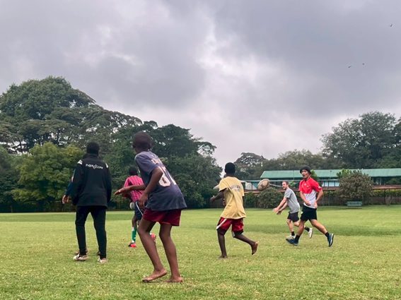 2024 年 9 月、私たちはナイロビのDBA Rugby Academy とパートナーシップを結びました。実はこのアカデミー、既に毎週末 100 人以上の子どもたち(U15)が集まる人気プログラムだったのですが、その多くがキベラスラム出身で、靴も持っていない子が珍しくありません。そんな彼らに バスでの送迎、シューズの貸し出し、芝生のフルサイズピッチ、そして 練習後のランチ を提供しているのが DBA です。その志に共感し、Waziwazi として「もっと良いアカデミーにしよう」と手を取り合いました。 私たちが特に力を入れたのが、練習メニューの“日本流アップデート” です。ケニアの教育現場は良くも悪くも「先生の言うことは絶対」という権威主義的な雰囲気が色濃く残っています。ビジネスの現場でも上司が指示を出し、部下は「はい」と従うのが普通。昭和の日本っぽいですね。 そこで導入したのが、Chap Chap Interaction と名付けた仕組みです(Chap Chapはスワヒリ語で「速く、速く」の意味です)。練習を 5 分、10 分と細切れにし、その都度子どもたちを小グループに分けて「今やったことはうまくできた?できなかった?どうして?」を話し合わせます。その内容をコーチに報告し、コーチはさらに「Why?」を深掘りする。要は 対話と気づきのサイクル を高速で回すわけです。 正直、最初はうまくいきませんでした。コーチはすぐに「こうしろ、ああしろ」と指示を出し、子どもたちは黙ったまま。しかし、ここで工夫をしたのは、子ども達ではなくコーチに “なぜ自発性が大事なのか” を根気よく伝え続ける、ということでした。その結果、1年経った今ではコーチが質問役に徹し、それによって子どもが積極的に意見を出す場面が増えてきました。下を向いていた子が手を挙げて話す──そんな光景が少しずつ普通になりつつあります。このように、コーチの指導方法のカイゼンなども重ねることで、子ども達のトレーニングがより向上しています。 アカデミーで頭角を現した子の中には、奨学金を得て国内インターナショナルスクールに進学した例も出てきました。「ラグビーを通じて人生が変わる」瞬間を間近で見るたび、この活動の意義を実感します。 最後に、このアカデミーを支えるクラウドファンディングでご支援くださった皆さまに、改めて心より御礼申し上げます。芝生のグラウンドを走り回り、汗だくでタックルする子どもたちの笑顔は、まさに皆さまのお力添えの賜物です。【写真1:必死に楕円球を追いかける子供たち。まだまだ靴が足りません】